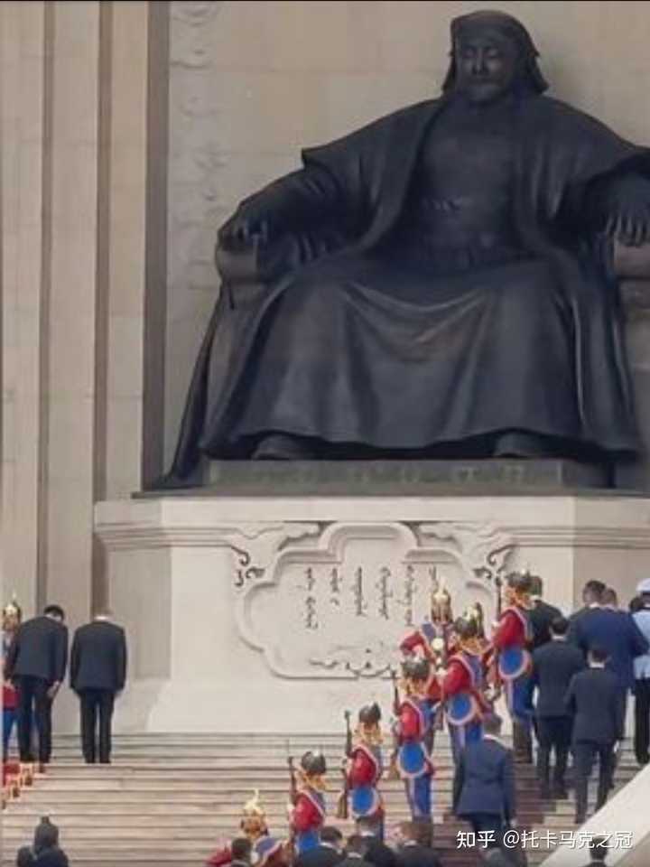 现在又增加了一个新buff,长生天护佑下的全罗斯大公,第一拔兔儿。图为普京在蒙古国总统乌赫那引导下向铁木真雕塑鞠躬。