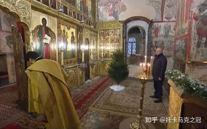 东正教徒。图为普京参加东正教圣诞弥撒,按照俄东正教会给俄军发放的祈祷书所述,普京是天堂军队的统帅,大天使米迦勒。