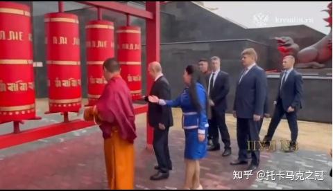 现在又增加了一个新buff,长生天护佑下的全罗斯大公,第一拔兔儿。图为普京在蒙古国总统乌赫那引导下向铁木真雕塑鞠躬。