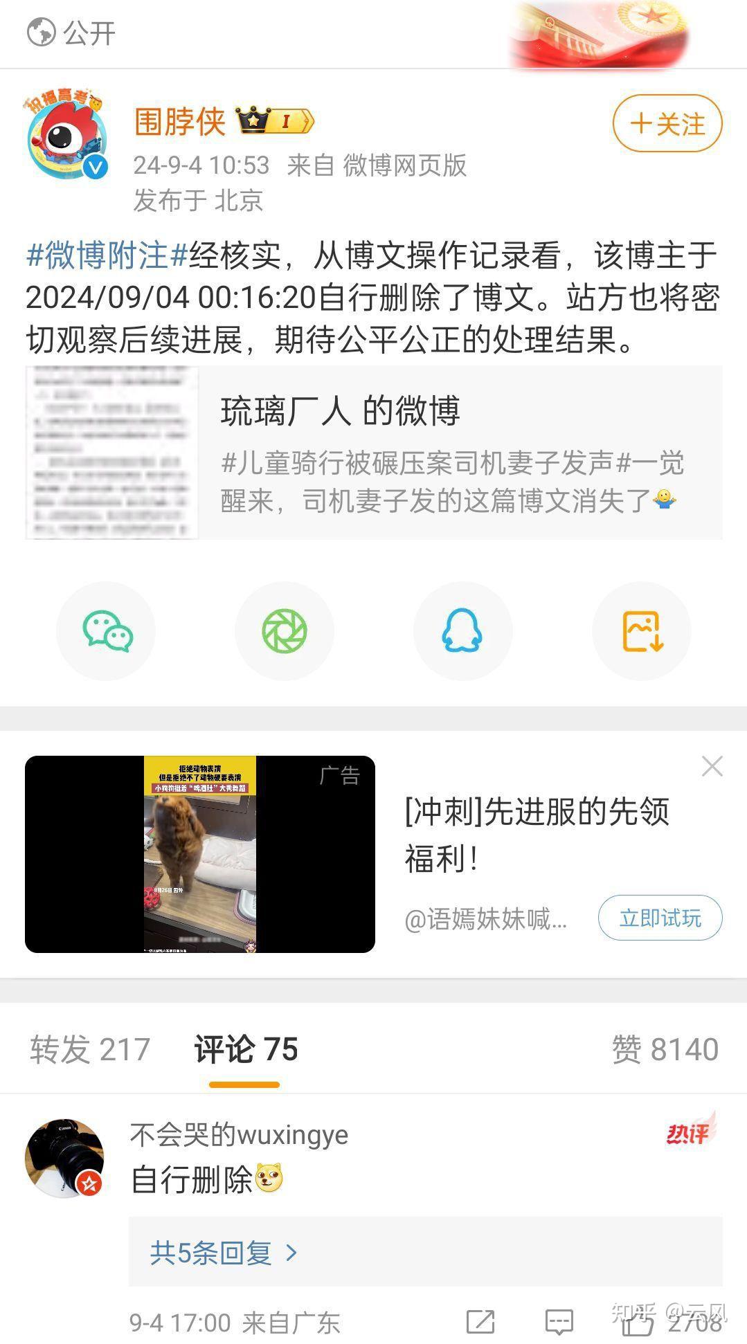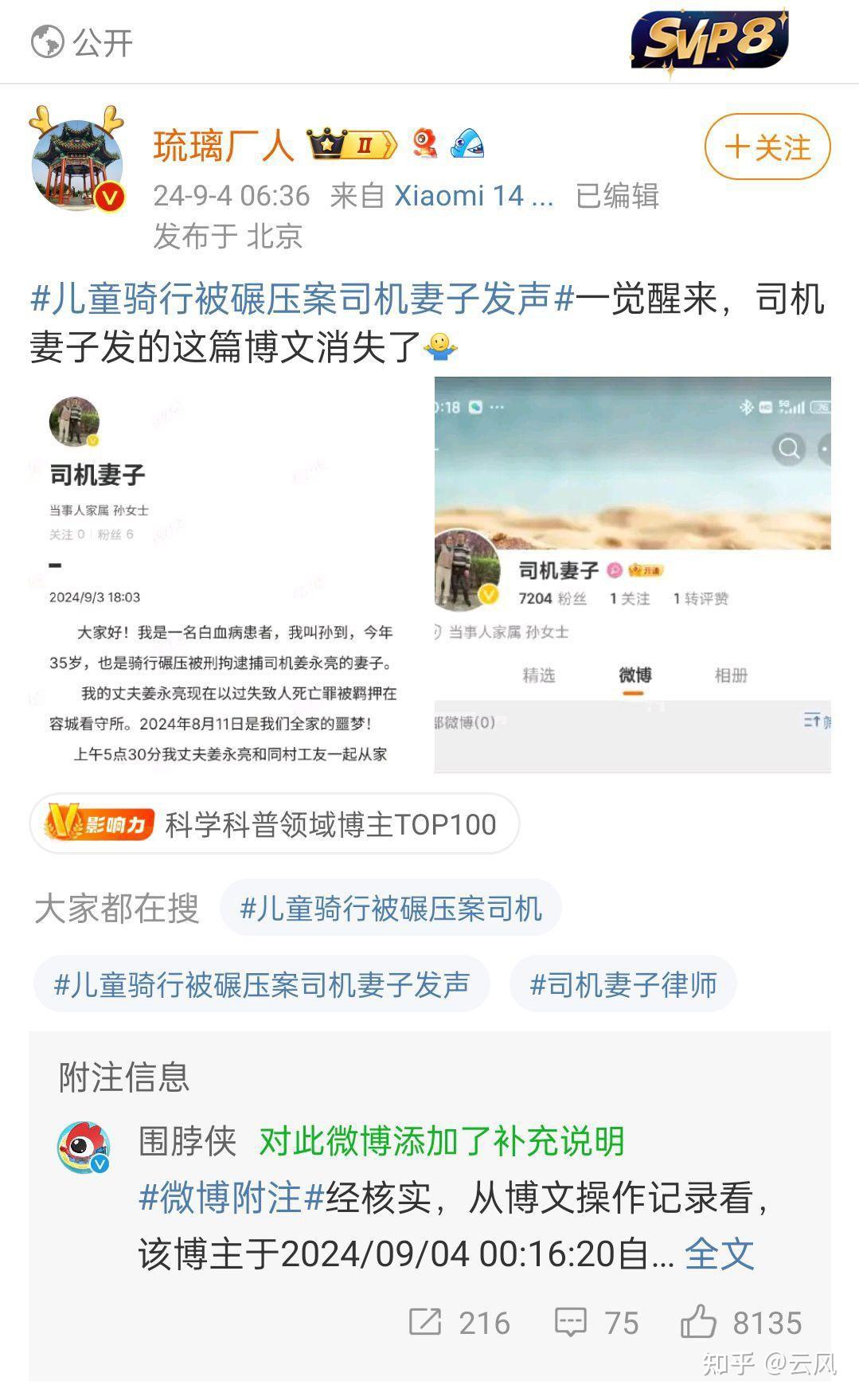 微博表示系司机妻子凌晨“自行”删除,但是大概率是因为“不可抗力”,怕舆论骂得太厉害。司机妻子的微博长文我放在最底下了,图片比较长。