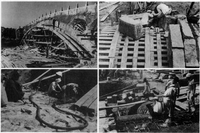 赵州桥上世纪五十年代重修,主要部位采用压力灌浆,浇筑有钢混结构并新换大量石料,内部已非原工艺,贴面也是请北京建筑艺术雕塑工厂的刻石工人仿制的。