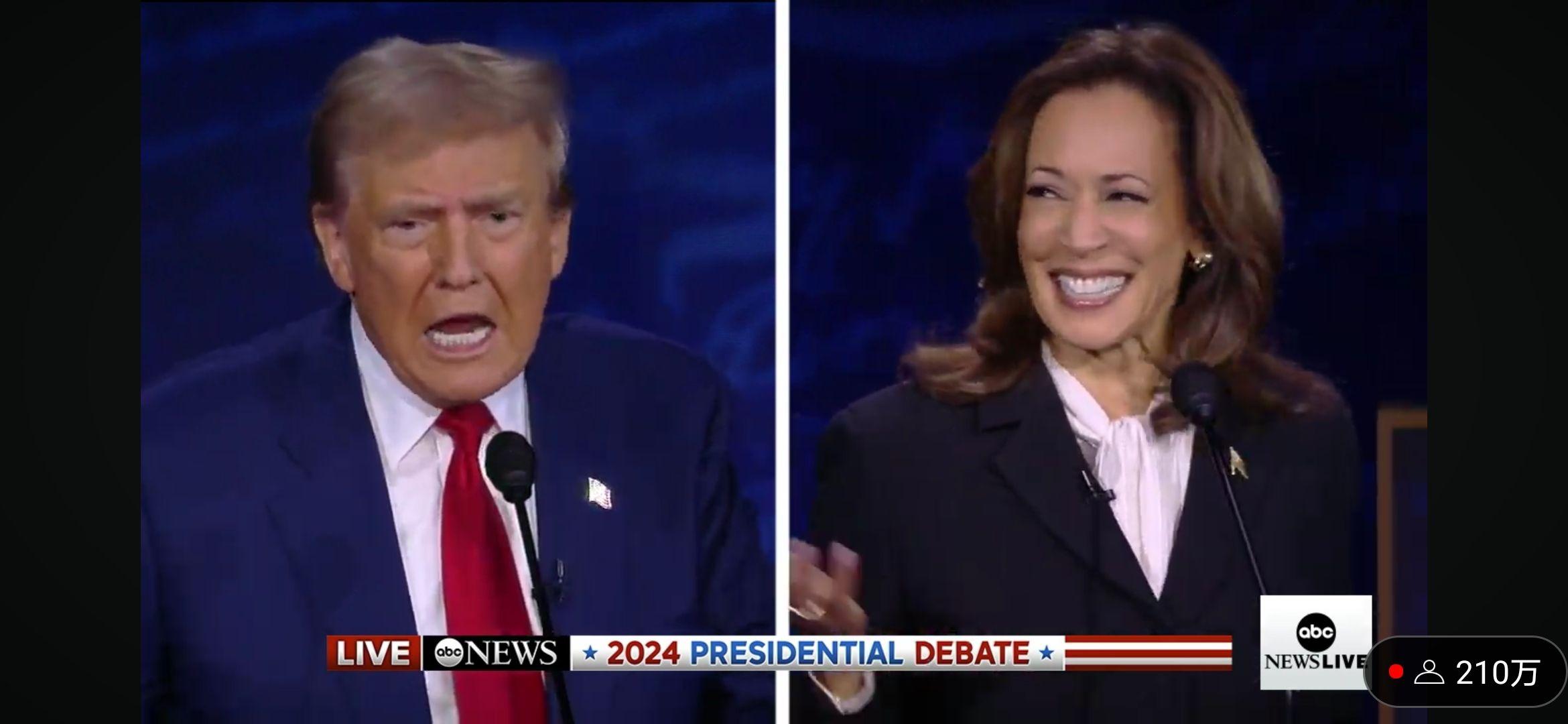 哈里斯现在所形成的效果,并不是说她自己有多厉害[1],而是想办法比烂,创造出一种“川普拜登化”的印象。除了在非法移民干了什么和“杀小孩(出生后的)”两个川普失误点之外,哈里斯没有真的在辩论角度打出了什么KO。川普看着不像拜登,选民一查年龄数据,不会觉得哈里斯60岁真的年轻,However——众所周知,2012年以后的所有美国总统选举辩论,全部已经和实际政策脱节化,沦为纯粹比拼对骂能力的脱口秀。