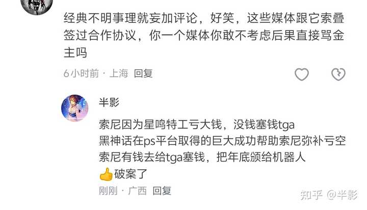 别说什么美末2拿年度没问题,当年美末2拿年度的时候你们都骂翻天了,替半条命alyx叫屈,骂索尼砸钱拿奖的场景还历历在目,这会想岁月史书不承认?