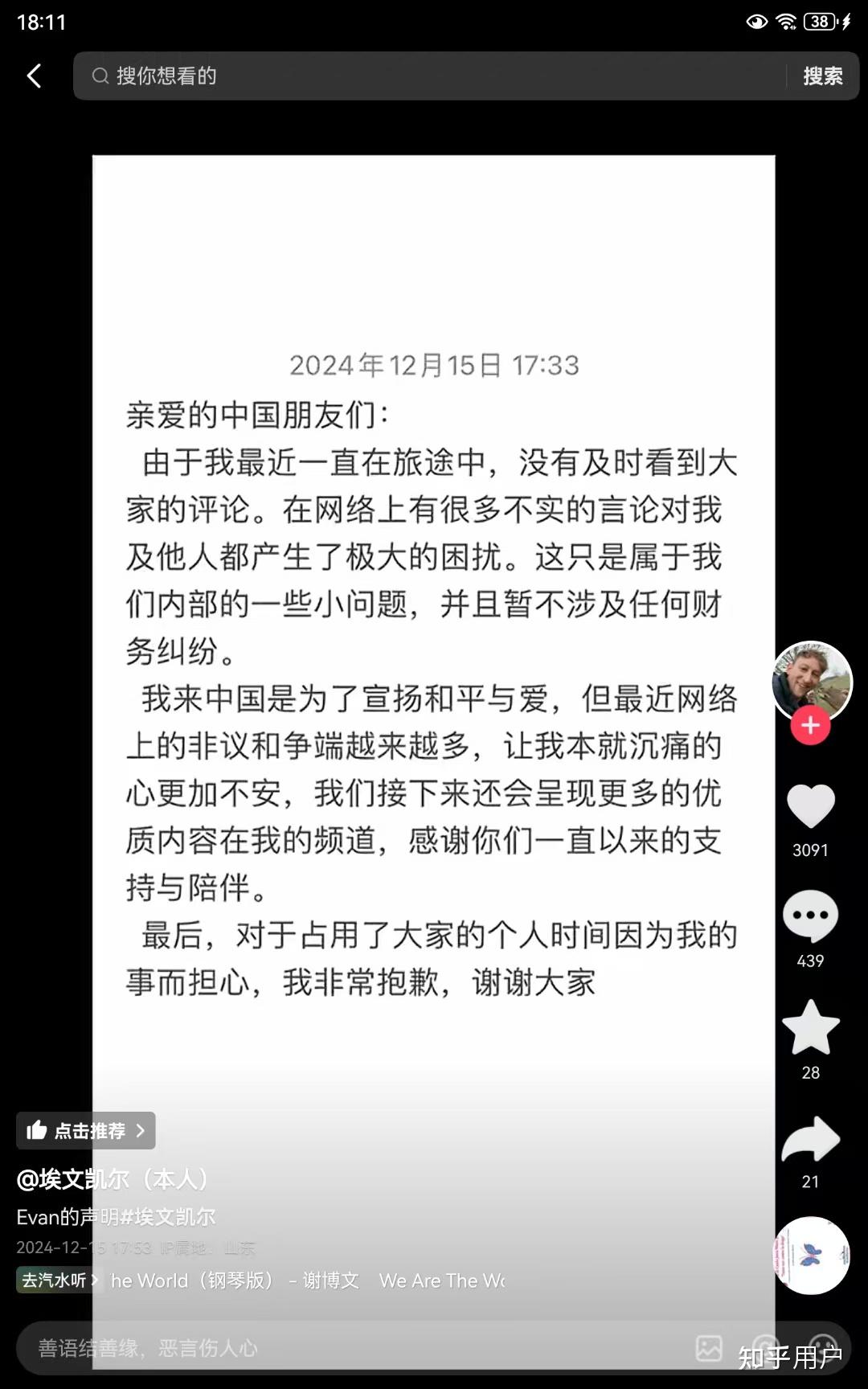 如何看待埃文凯尔在个人账号宣布没有和助理发生财务纠纷?