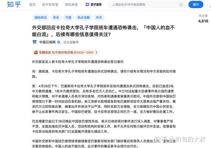 这不是中资企业第一次在巴基斯坦遭遇恐怖袭击,甚至不是2024年以来中国公民在巴基斯坦遭袭,今年3月,巴基斯坦一周内曾发生三起针对中资参与项目的重大袭击。