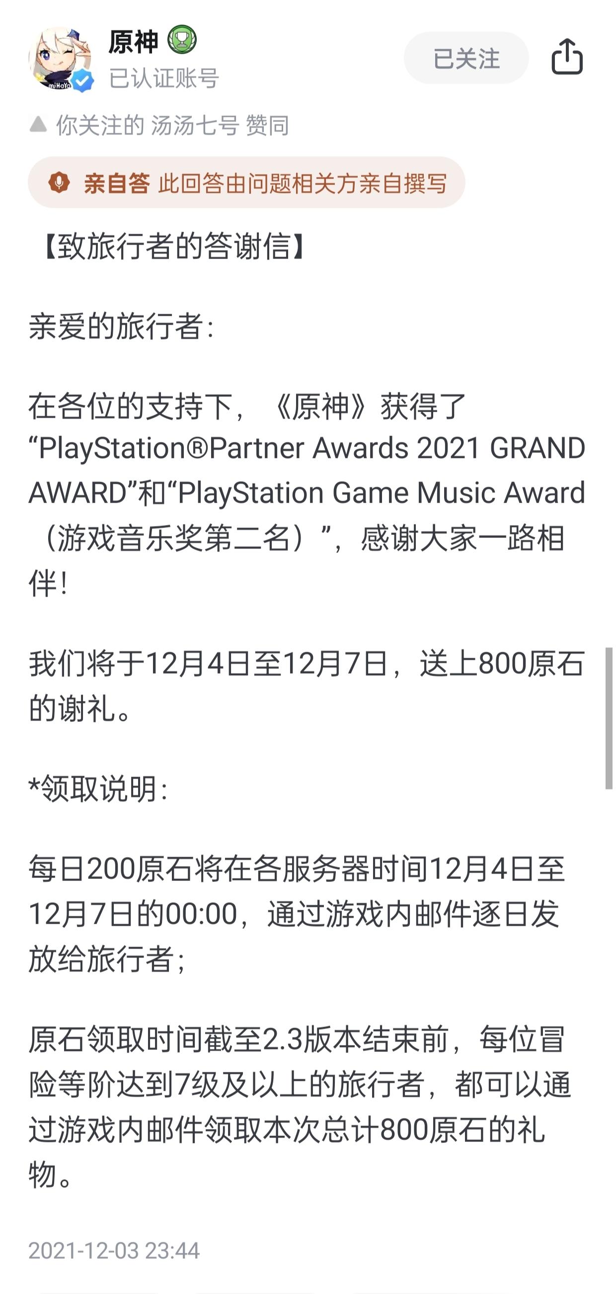 、命运2、FF14、我的世界、堡垒之夜 、宝可梦GO、Apex英雄、失落方舟 、上古卷轴OL2022PlayStation Partner Awards,800原石的席又开了,这次和原神坐一桌吃饭的是:艾尔登法环、鬼灭之刃:火神血风谭、游戏王Master Duel、机动战士高达