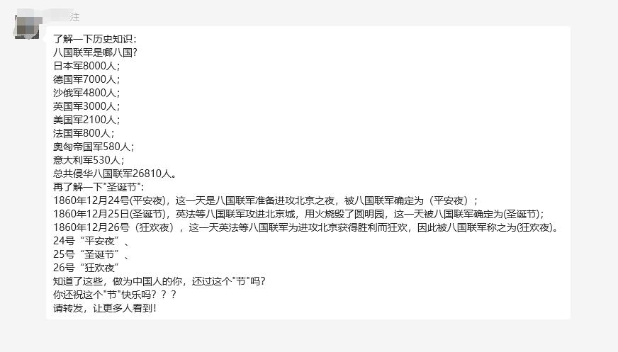 我这里还有一个说八国联军庆祝火烧圆明园才叫圣诞节的呢