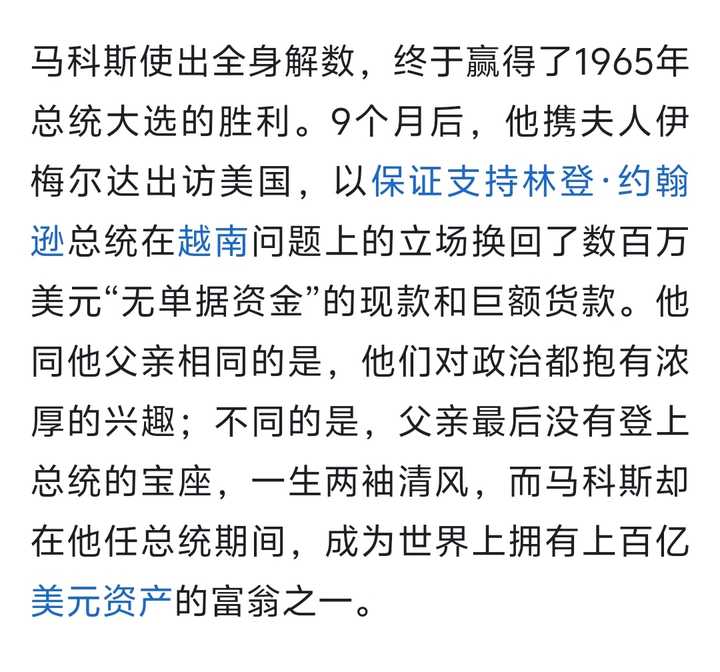 当然,能实际获得大量好处的,除了洛马公司,可能就是小马科斯本人了,毕竟他爹就是靠明码标价出卖国家利益当上东南亚首富的,他爹的财产清算到现在都是一笔糊涂账,尤其是在美国的部分,谁知道小马科斯今天是不是仍然在花他爹的钱。