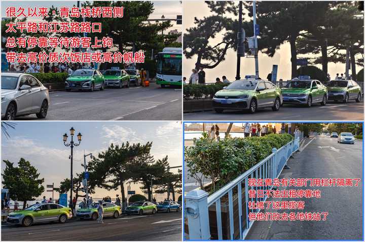 青岛部分在包括但不限于机场、火车站、地铁站、栈桥、天主教堂浙江路、奥帆新会路、八大关、燕儿岛公园等景区停靠拉客、等活儿的❌出租车 包括部分网约车平台的出租车,靠欺骗乘客,带乘客去有30%回扣的饭店,宰客 坑人 多年无改观,不要信他们半句话,尤其是千万不能去他们推荐的饭店和景点!!!
