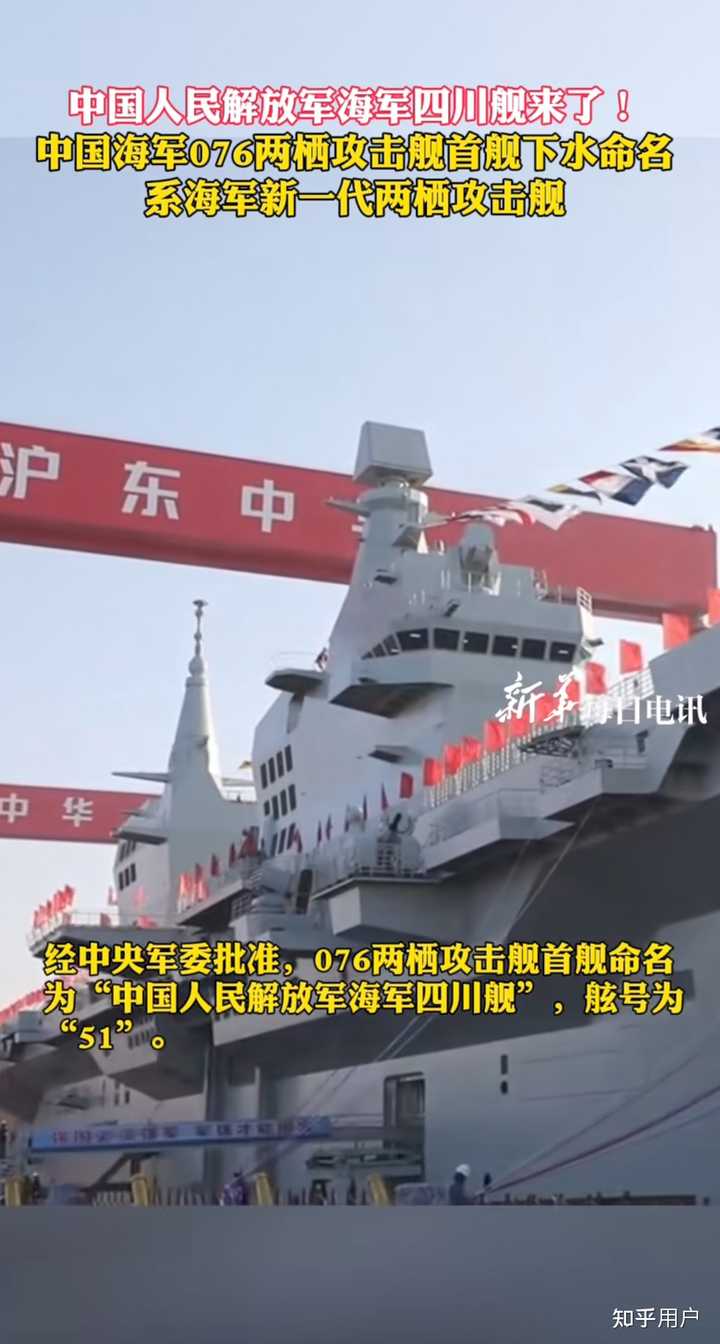 中国海军 076 两栖攻击舰首舰在上海下水,命名「四川舰」,舷号为「51」,有哪些信息值得关注?