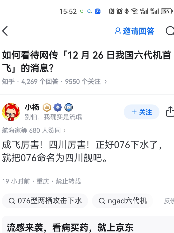 四川人民刚刚经历了六代机首飞的喜悦,今天又喜提076型两栖攻击舰首舰,可谓双喜临门(广东、江苏松了一口气,又少了一个核动力航母的竞争对手)。