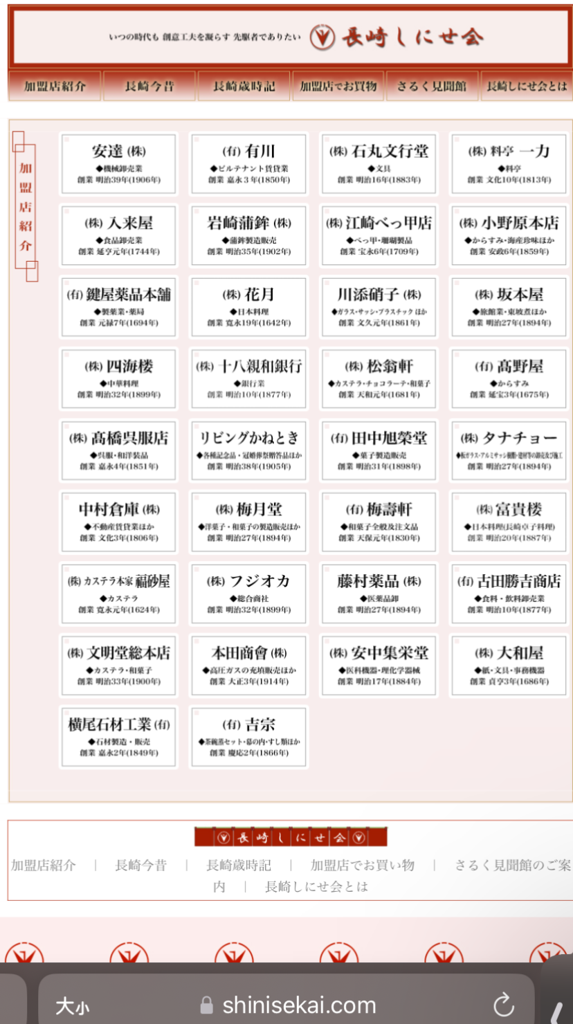 长崎不仅有百年老店,而且还有老店联合会,成员名单及成立时间如下: