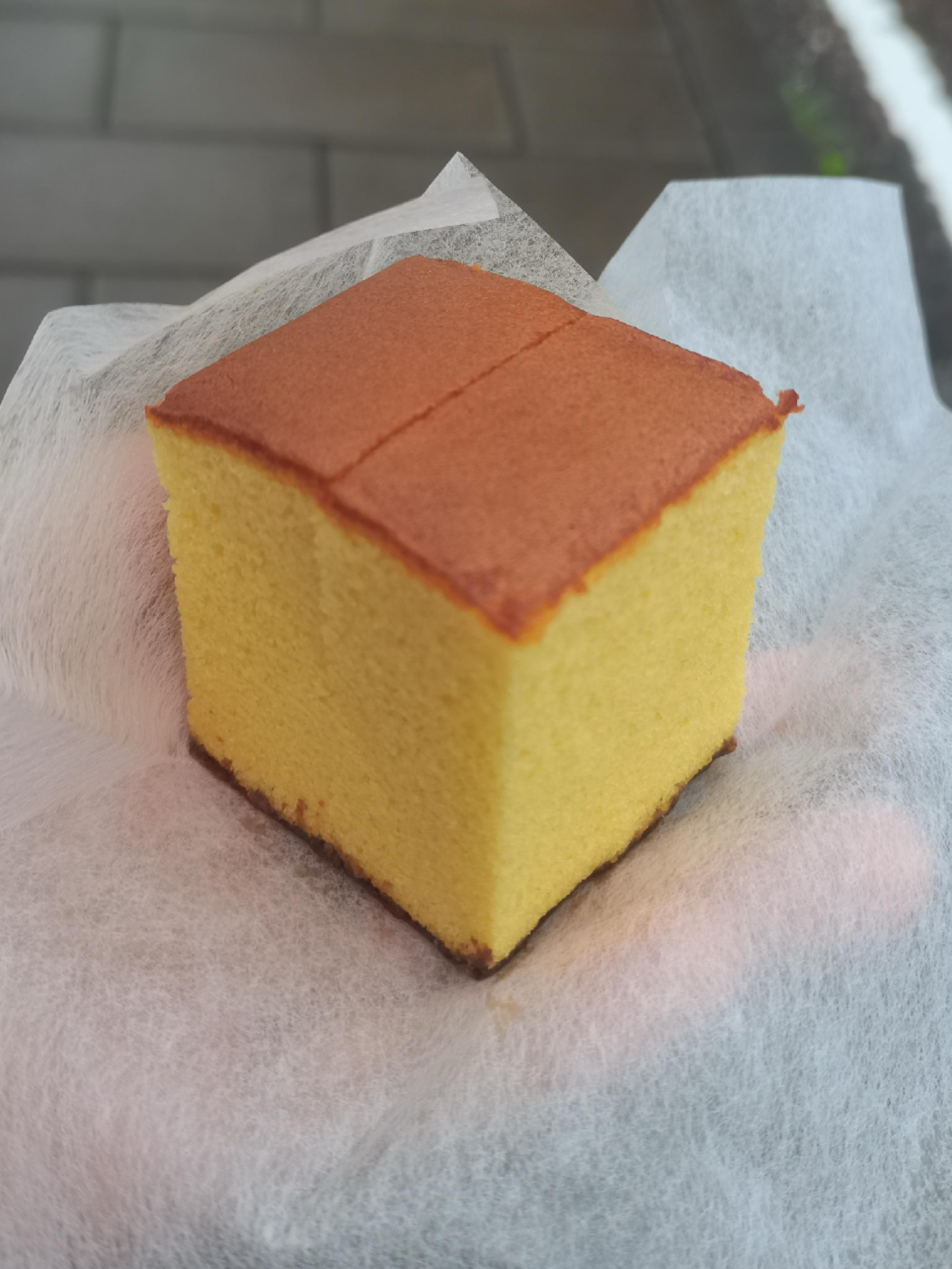 这块方方正正的小点心,就是长崎的本地的蛋糕店“福砂屋”产的长崎蛋糕(カスタード)。质软,味极甜。配料表极其简单,只有小麦粉鸡蛋砂糖牛奶等。如果照着Minecraft的配方做蛋糕的话,想必做出的就是这个东西吧。