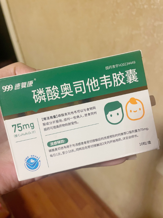 大量研究数据表明,在发病 48h内使用奥司他韦对流感病例均有显著疗效,可缩短病程至少30%,降低并发症发生率,使甲型 H1N1和 H5N1重症病例病死率下降50%。[11]我家里人甲流用的是999奥司他韦(成人认准75mg),对于大于13岁的青少年和成人,剂型是75mg,婴幼儿不太适用。999是治疗感冒多年的老牌子了,关键原材料质量都有保障,制作工艺也讲究,比起一些杂牌,这种央企大厂要更让人放心一些。而且在着急用药的时候,美团就能买,也很方便。