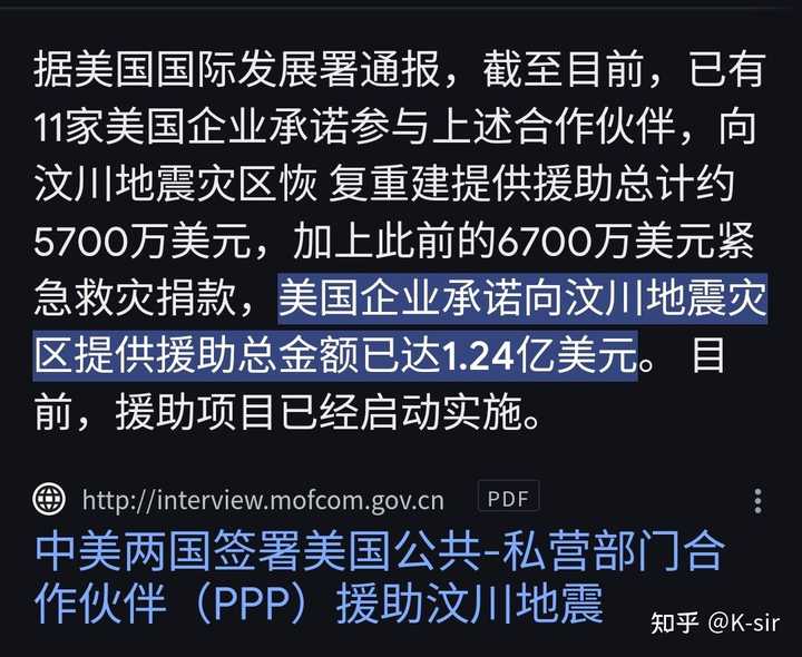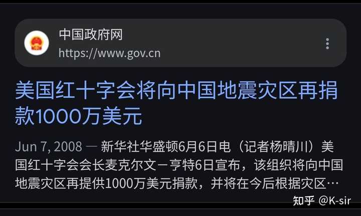 中国发生自然灾害的时候,美国人给中国捐款援助。
