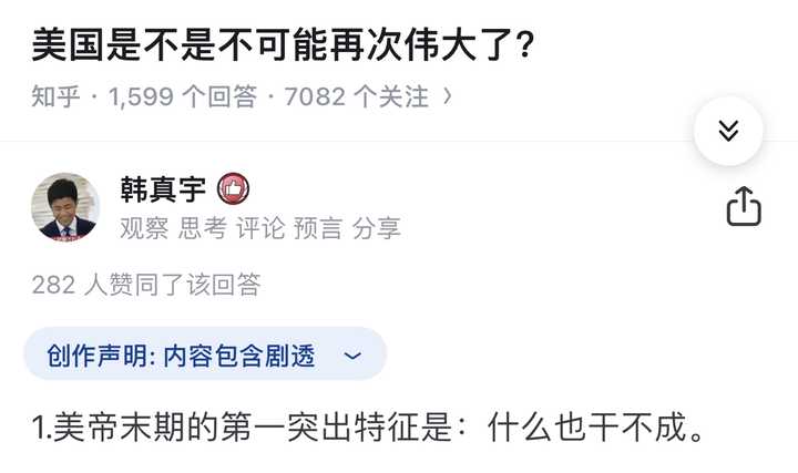 除了1450,拿钱的水军,谁还信美国价值观那套东西?美国塑造的价值观崩塌了,美元霸权也就快到头了。