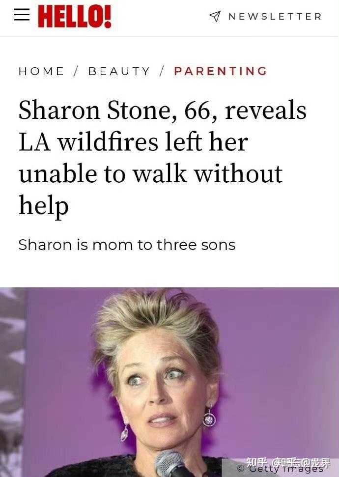 沙朗史通,66岁,生过仨娃,洛杉矶一场大火把房子给烧了。