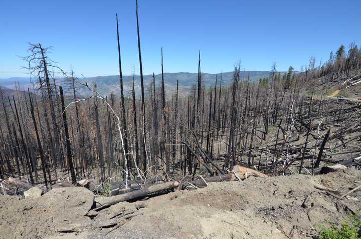 全美排名第二仅次于黄石的优胜美地国家森林公园就在加州,其被烧毁的森林群和黄石一样也成了一个单独的景色: