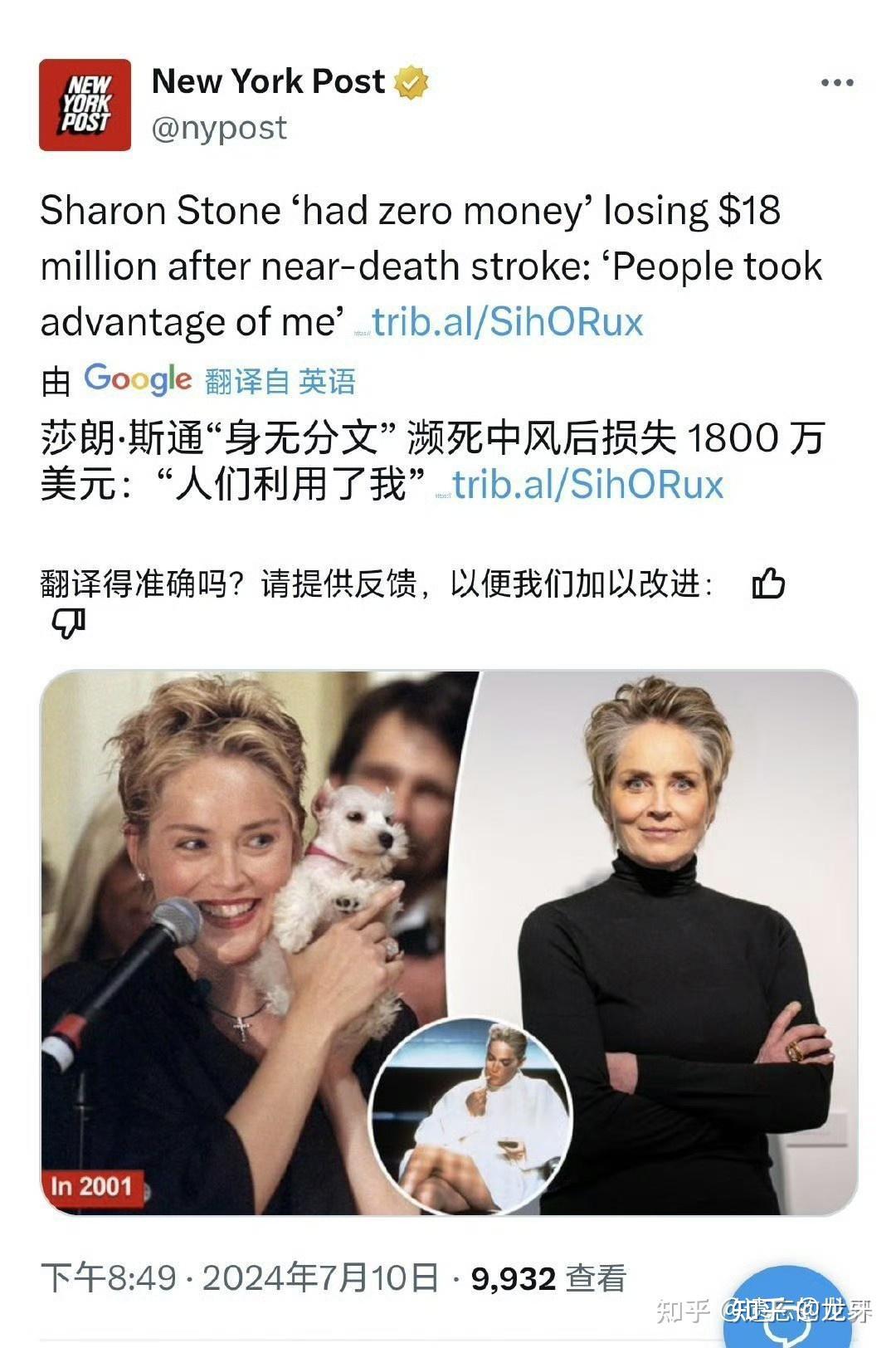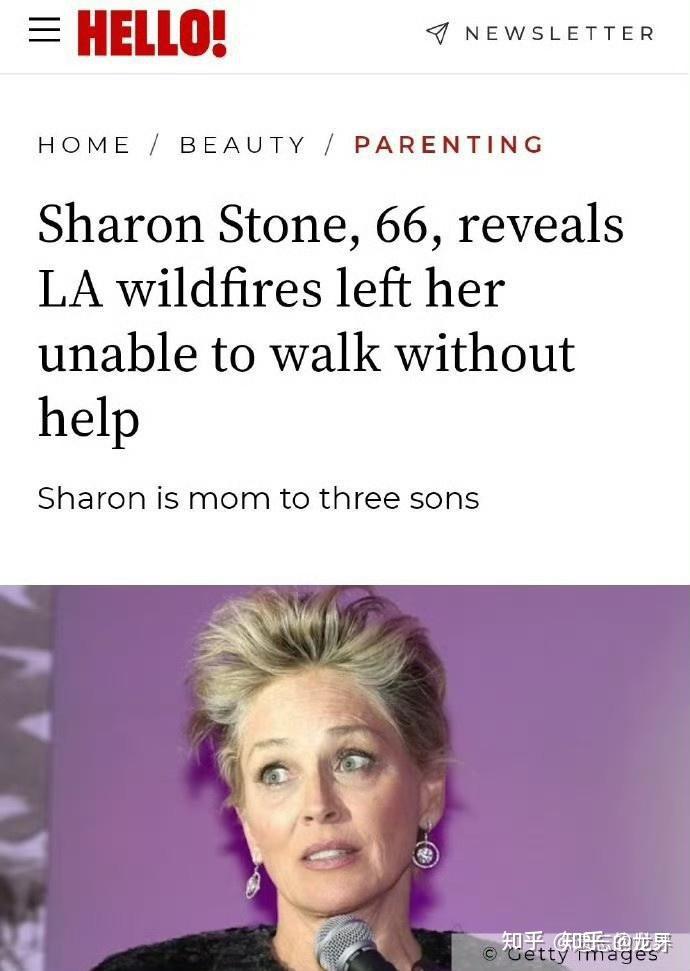 沙朗史通,66岁,生过仨娃,洛杉矶一场大火把房子给烧了。