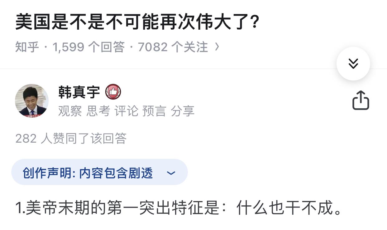 主要原因是资本失控,阶级固化,贫富分化。次要原因是历史短暂,文化浅薄,上上下下缺乏历史自觉。