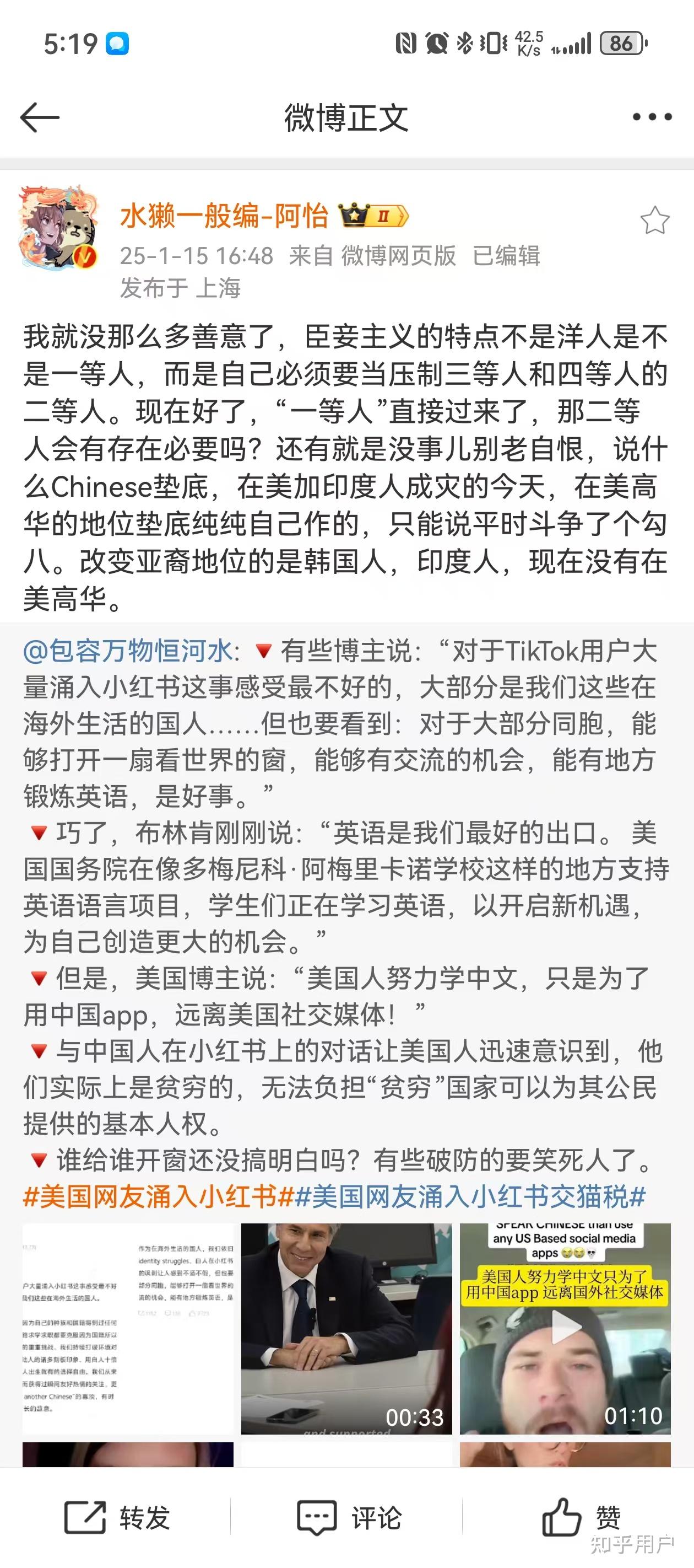 基本上可以肯定带锁区节奏的都是殖人。至于中国这边的态度么,连政府网公众号都出来蹭热度了……